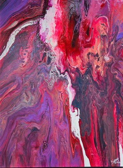 Pretty In Pink is a gorgeous blend of pinks and purples, displaying heart shaped figures moving all around. The brilliant purple shadows contrast beautifully with the orange and yellows across the canvas giving a pulsing energy throughout. Pretty in Pink a.k.a Looking Good and Feeling Good - a.k.a. Soul shining bright!