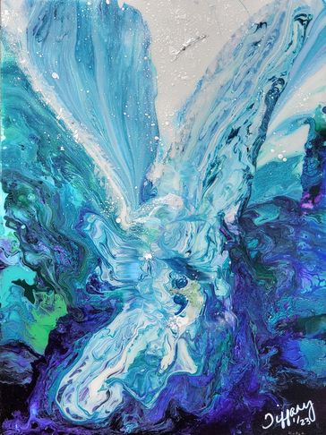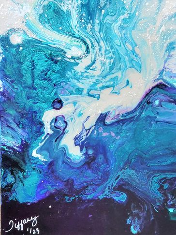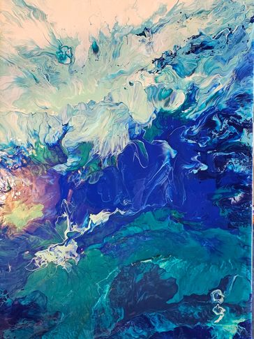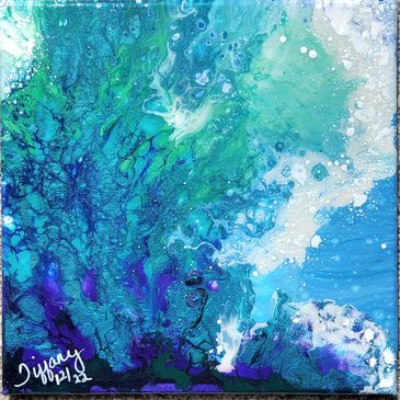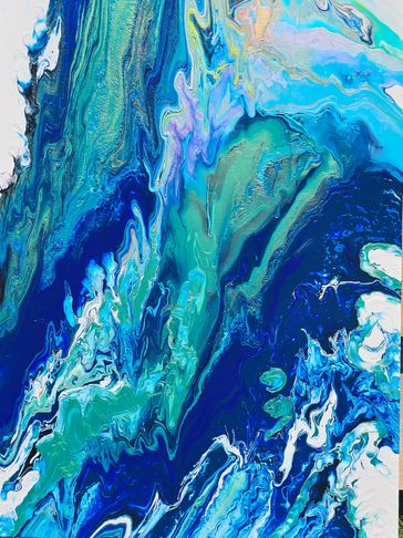 Dive In - is beautiful abstract pour of the magical ocean. The colors blend from the deep with the multiple blues and golds swirling up through to the surface. Water has such powerful healing qualilty that soothes our soul. As you imagine you are diving in and exploring the beauty of the deep, may you also feel peace and tranquility!